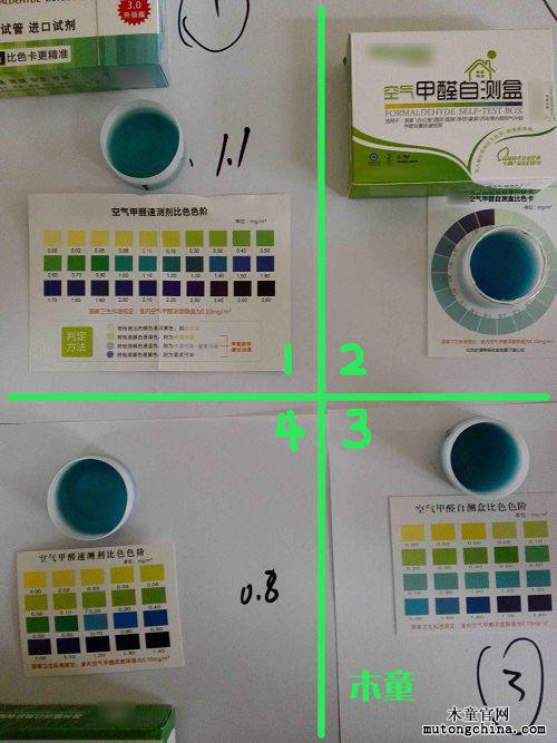 對比幾家的結果,木童和第二家檢測盒的數值一致均是1.4,準確的可能性較大,但第二家的顏色單一,不容易比對結果,第一家和第四家的數值相對較低1.1和0.8且不統一,說明不準確的可能性較大。