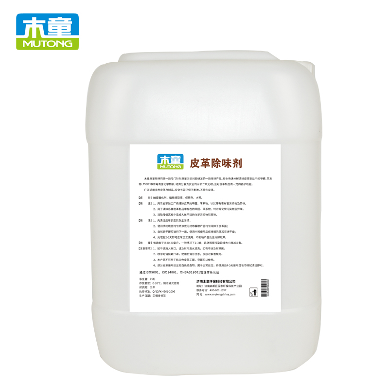 木童皮革除味劑是針對皮革污染異味問題研發的專用除味產品。快速分解安全清除皮革制品中的甲醛、苯系物、VOC等化學有毒有害污染物,將其分解為安全的水和二氧化碳。廣泛適用于多種皮革材料及其制品,安全環保不刺激,不傷皮革不傷手。