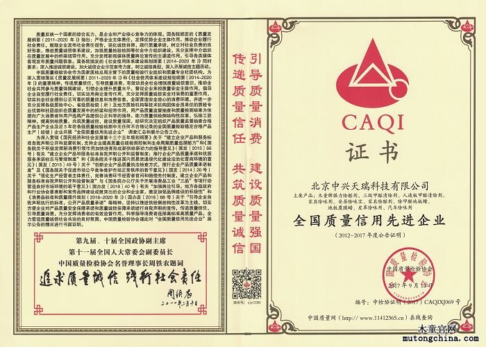 北京中興天瑞科技有限公司自2000年成立之初,始終堅持產品質量與誠信服務為核心,十幾年如一日不斷創新鉆研產品的同時,對室內環境污染治理服務進行全面研究,建立標準化、科學合理的質量管控體系和服務質量要求,并在今年七月份通過國家GB/T19001-2016 / ISO9001:2015質量管理體系認證。